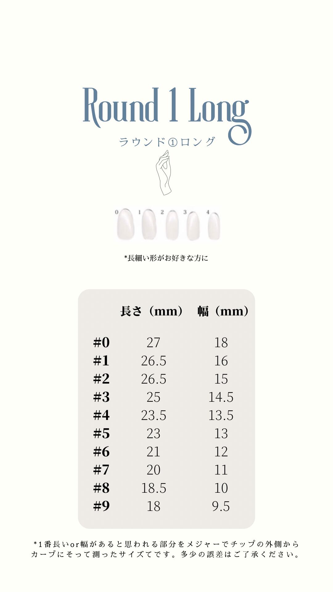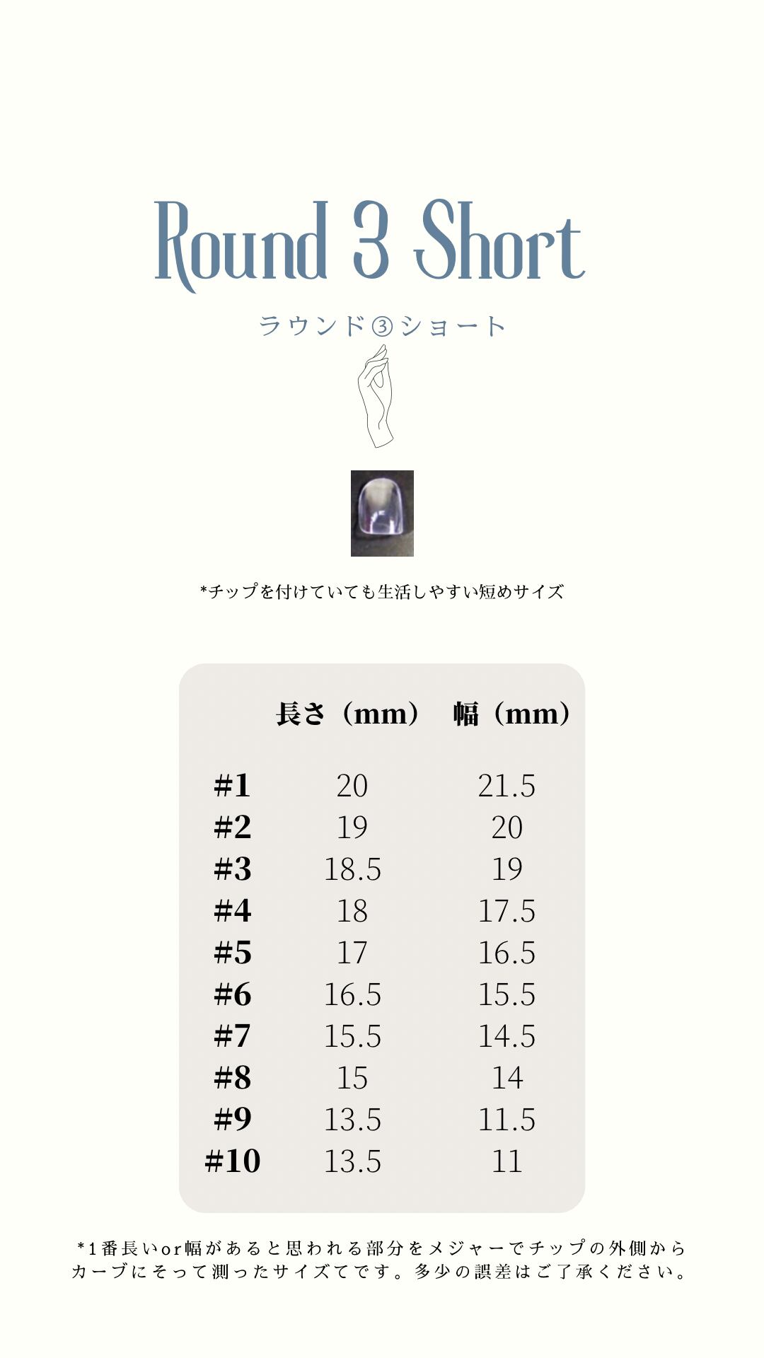 ●サイズ計測用チップを購入せずサイズを測る場合は、爪の一番広い幅を柔らかいメジャー(なければマスキングテープ等)で計測。