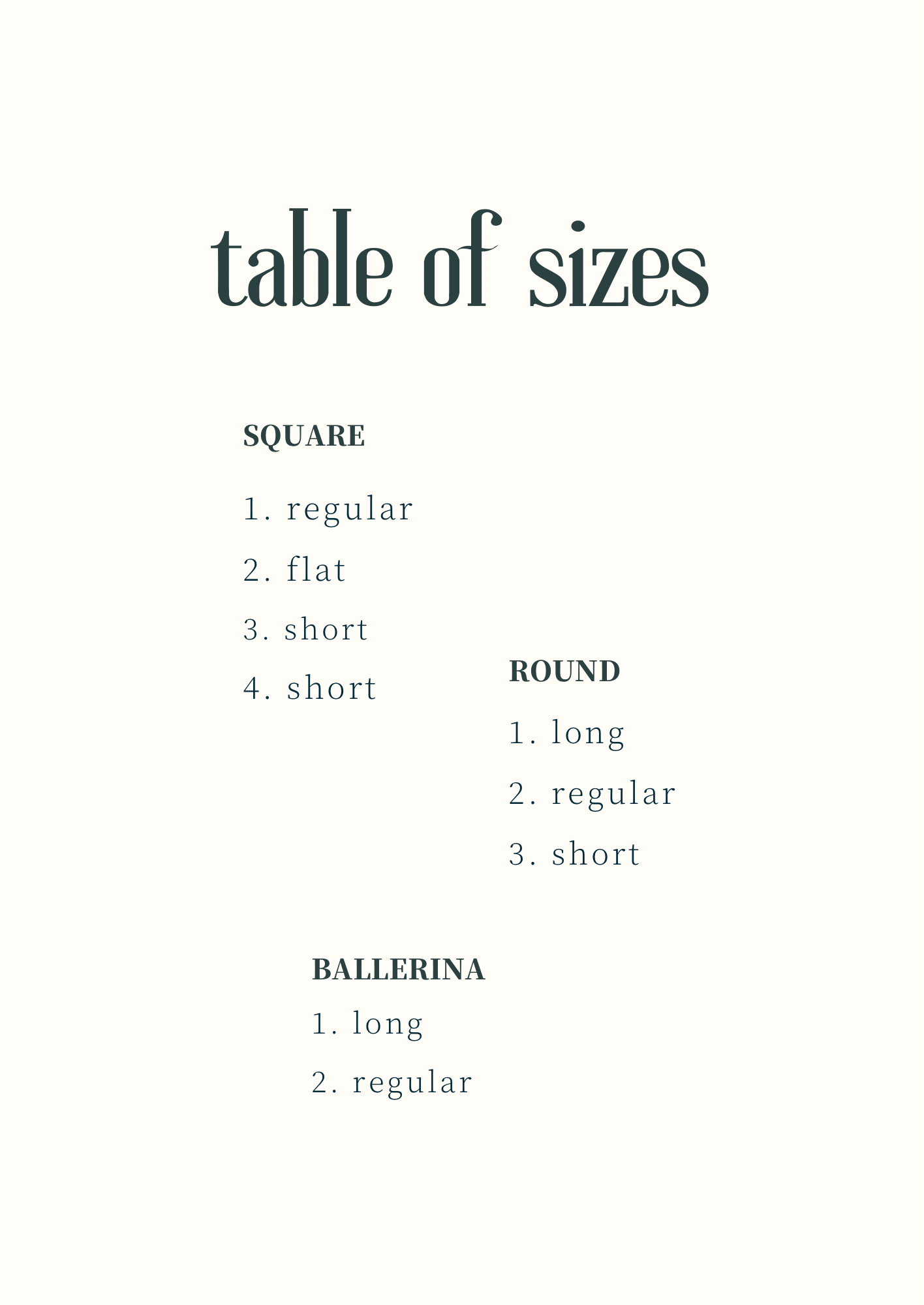 Table of sizes