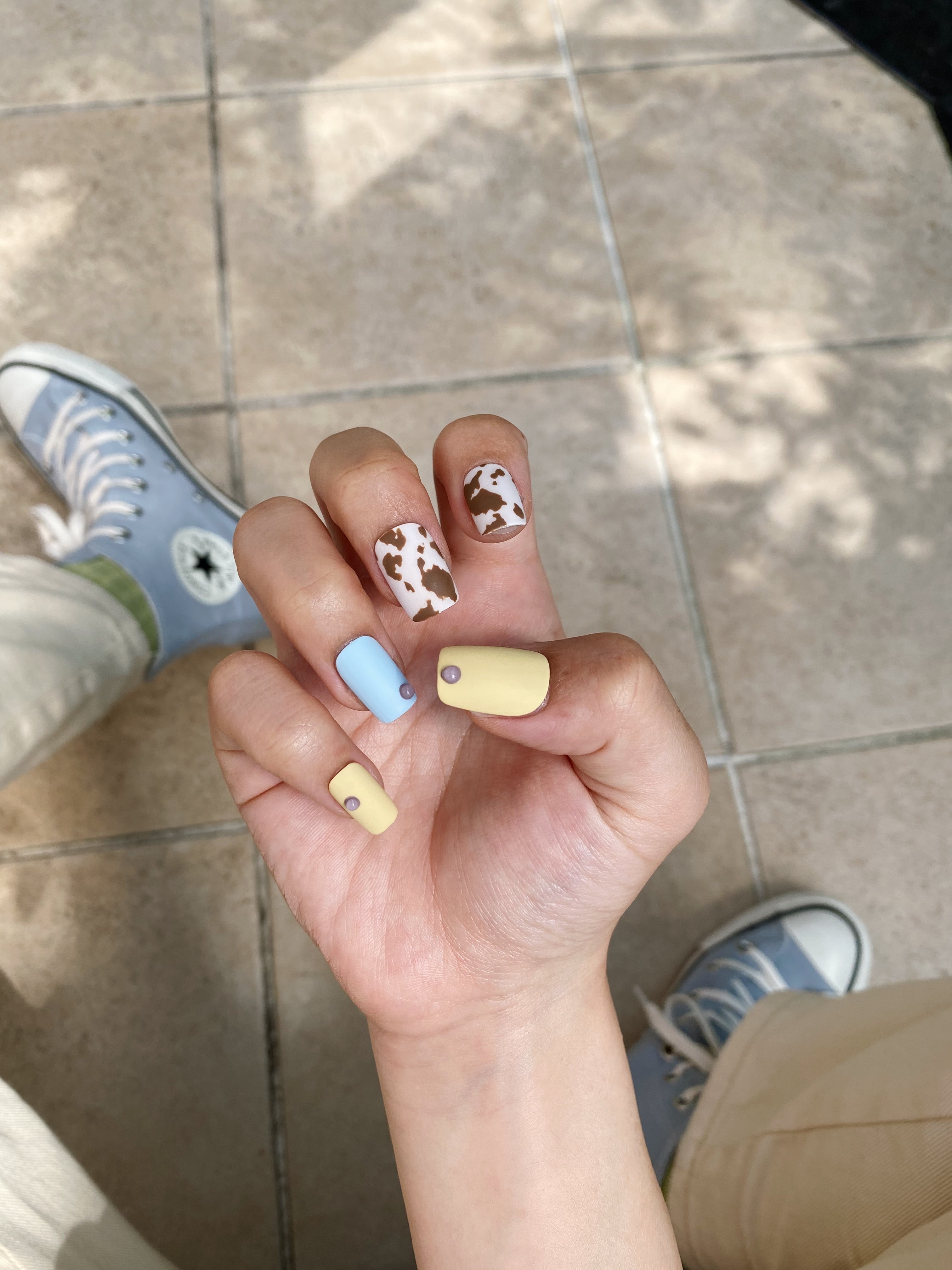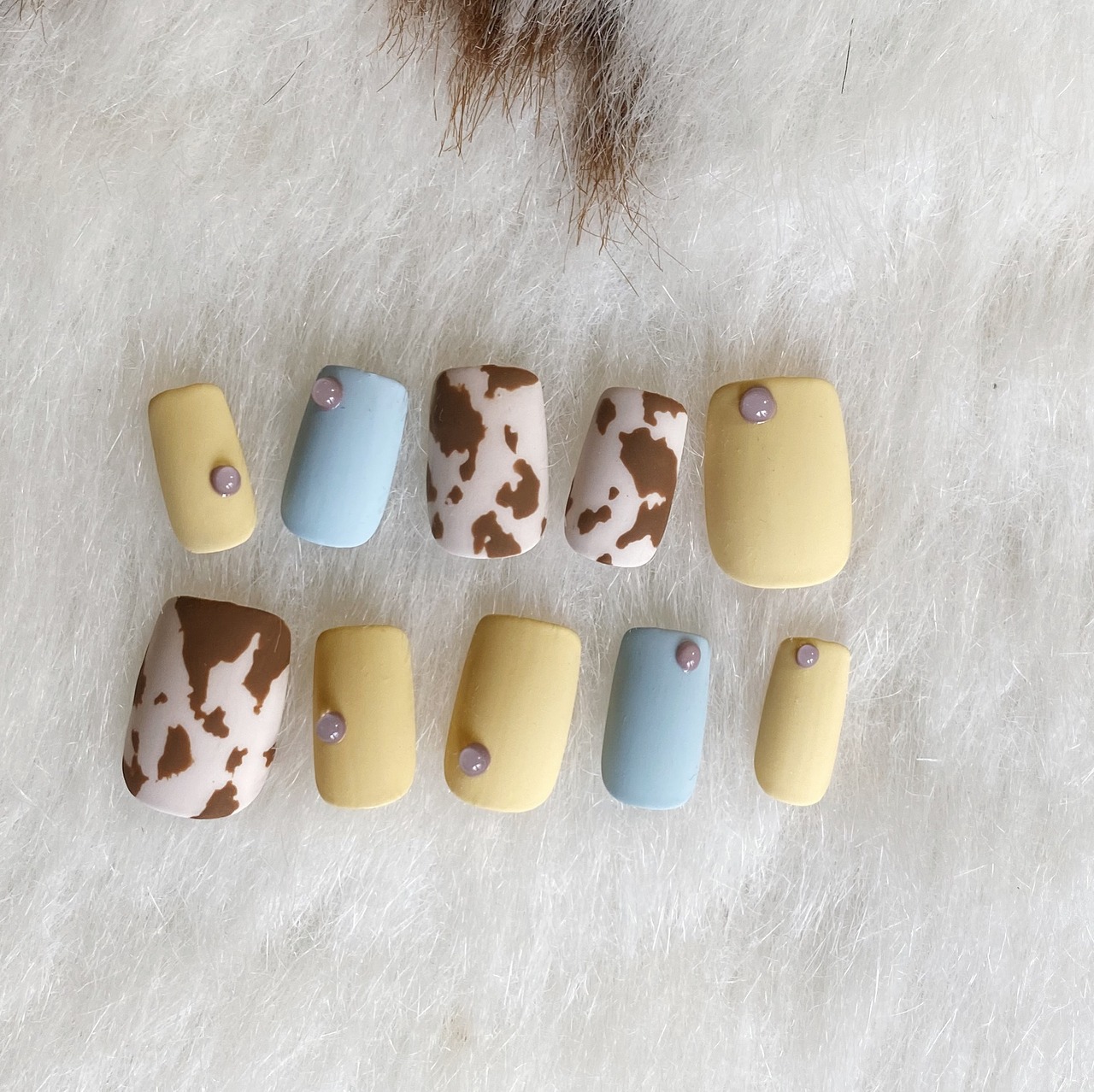 人気の牛柄、春カラーアレンジです。こちらはマット仕上げです。