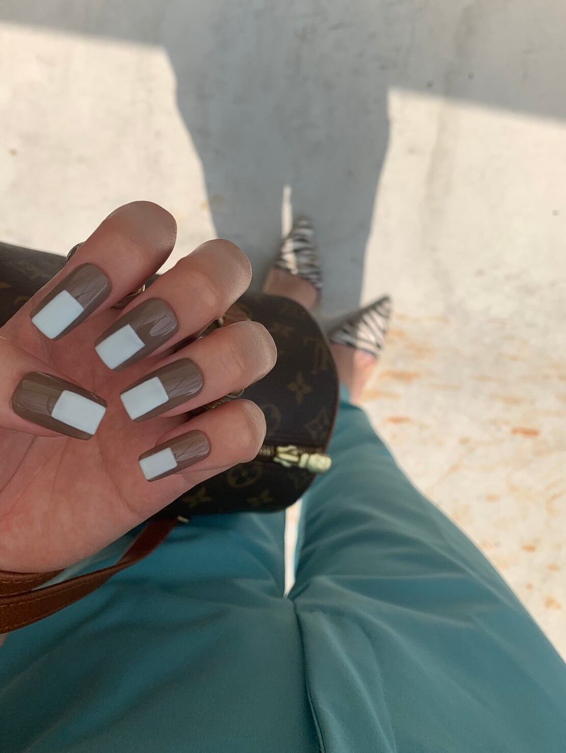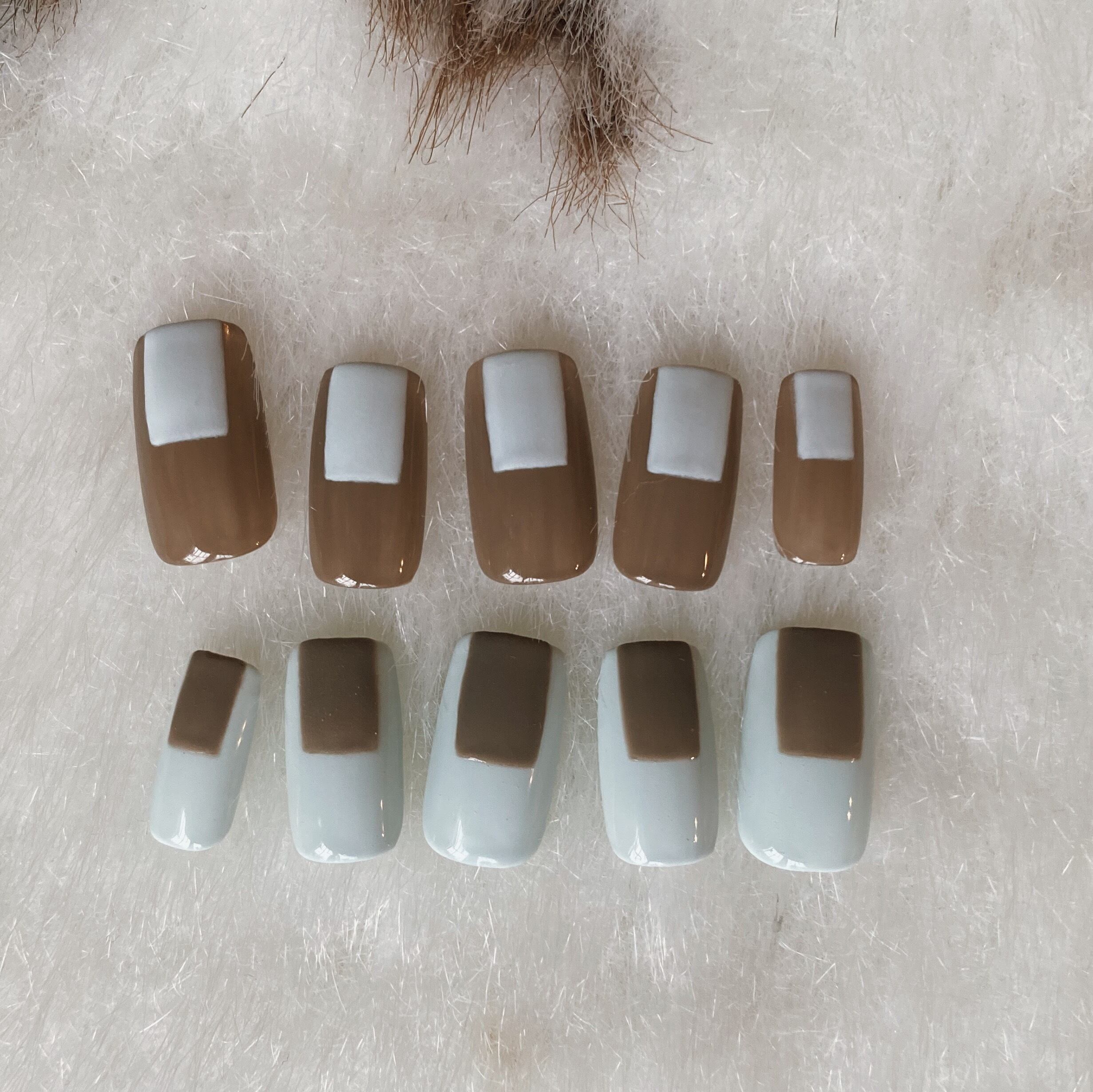 クリアブラウンとミントブルーのパキッとデザイン。マットとツヤで仕上げました。