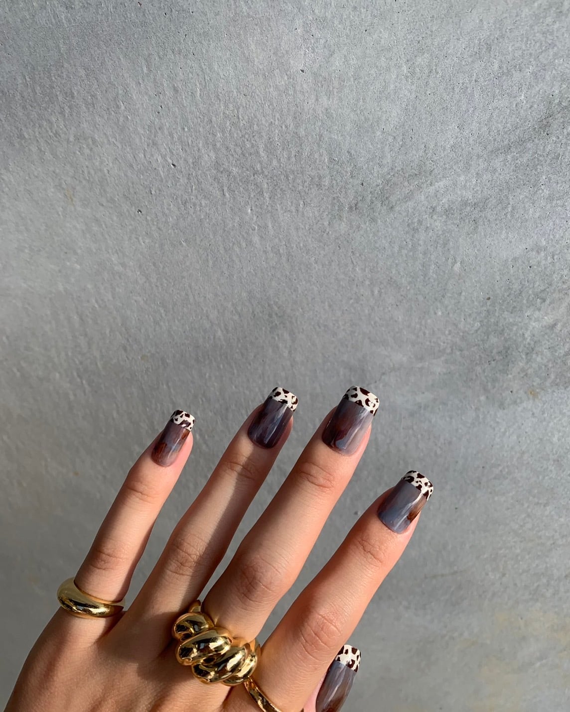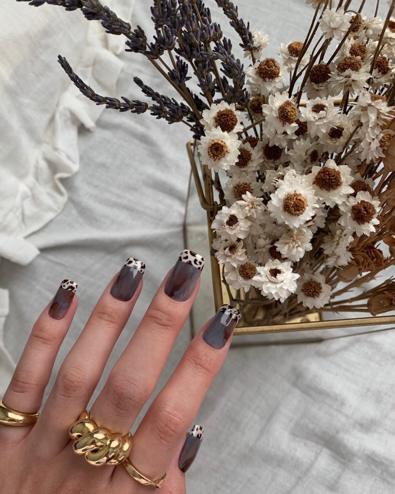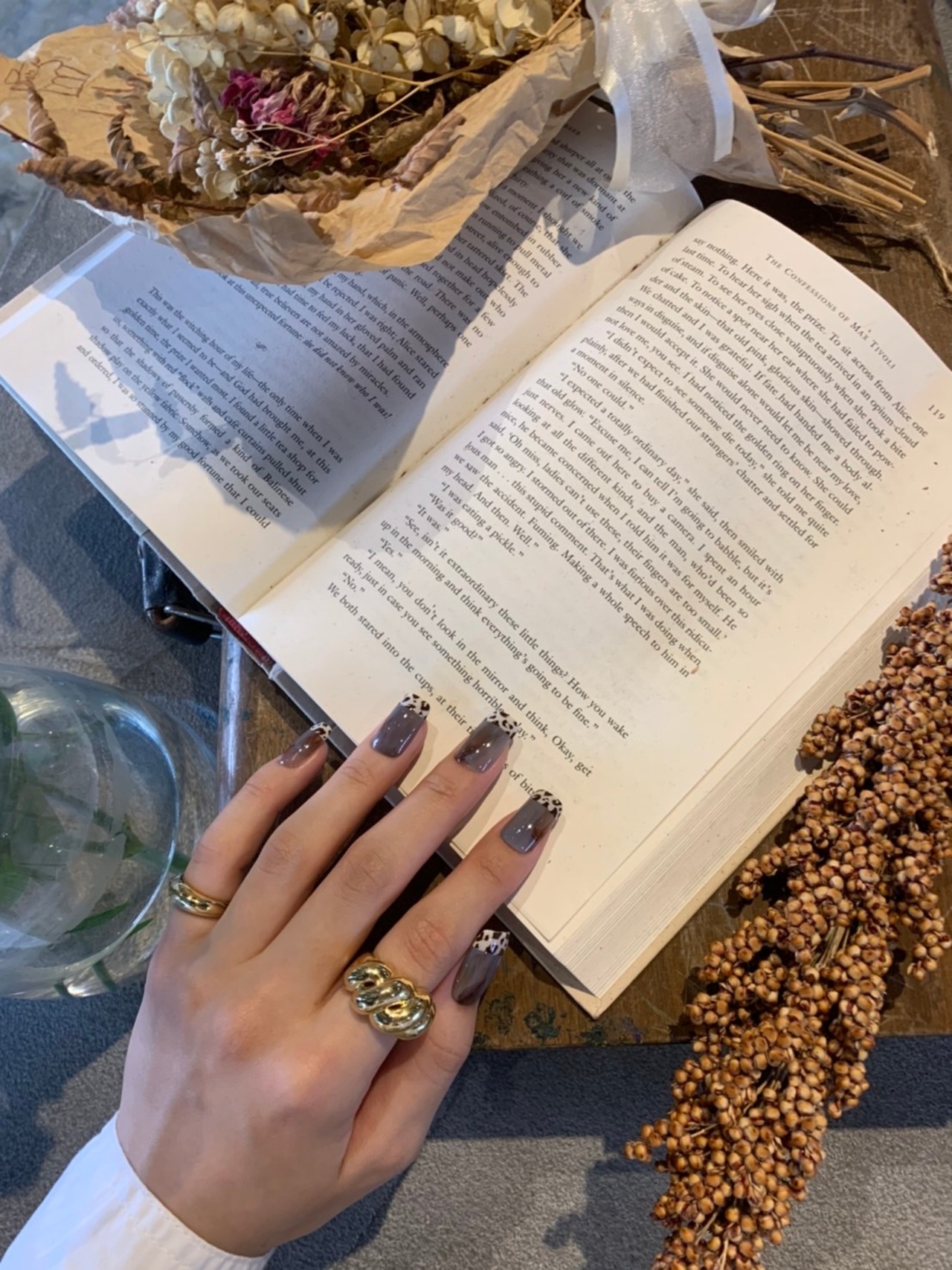 green と blue のニュアンス柄にレオパードのアクセントの効いたデザインです。