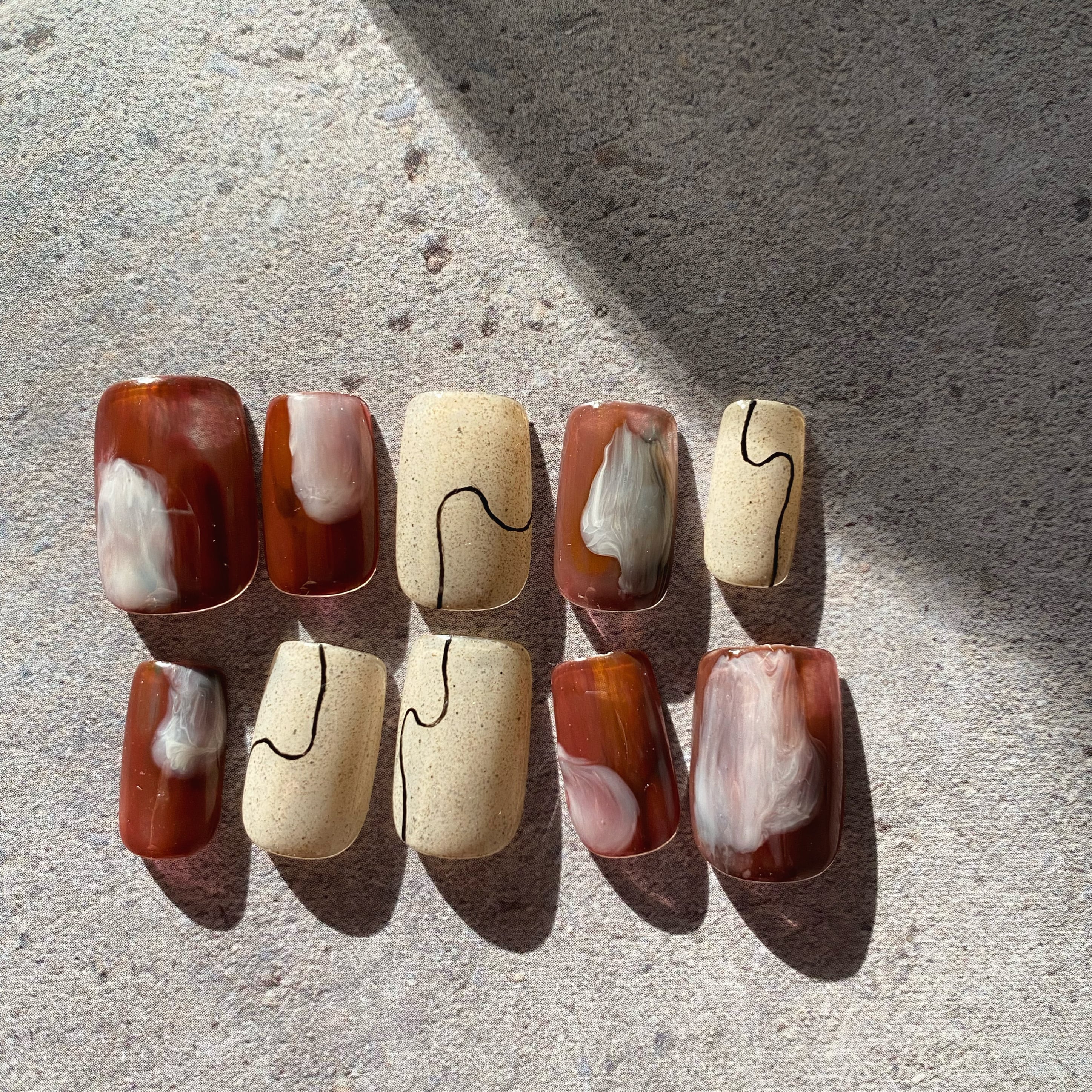 ボルドーカラーのニュアンスと、砂ジェルを合わせました。