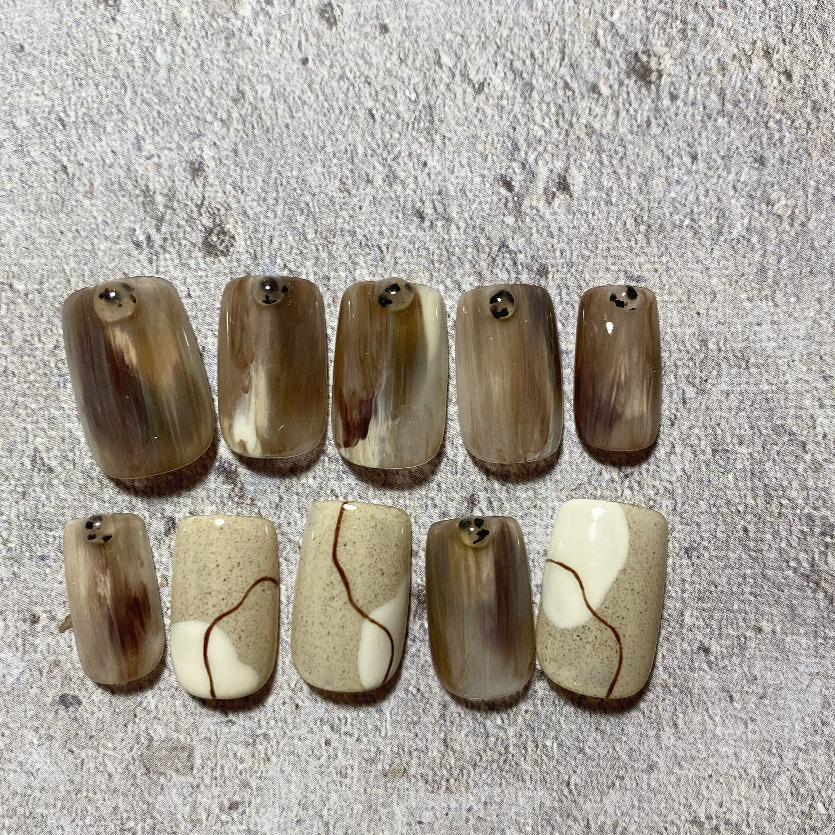 ブラウンのラテデザインの先にはつぶつぶ入のぷっくりとしたデザインを施しました。